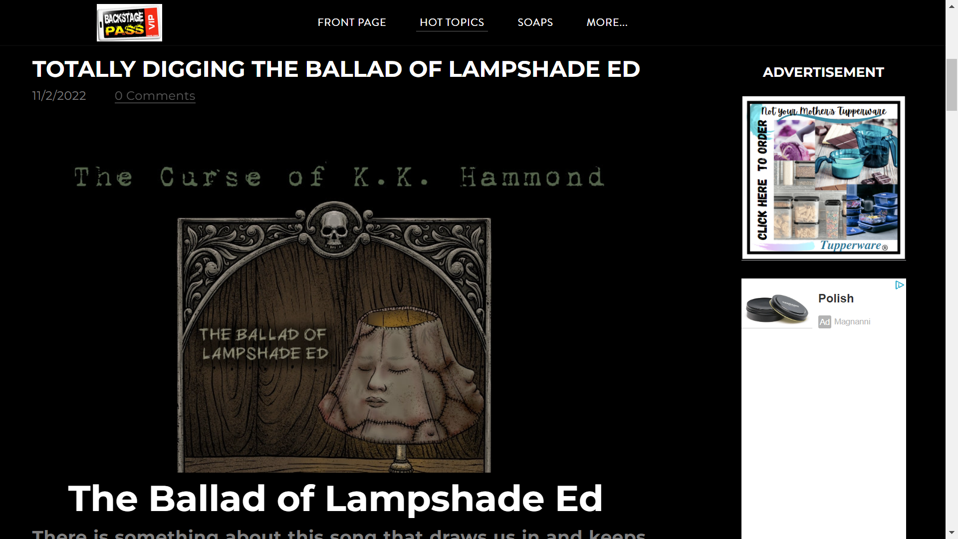 Backstage Pass News Reviews The Curse of KK Hammond’s “Ballad of Lampshade Ed” https://backstagepassnews.com/hot-topics/totally-digging-the-ballad-of-lampshade-ed