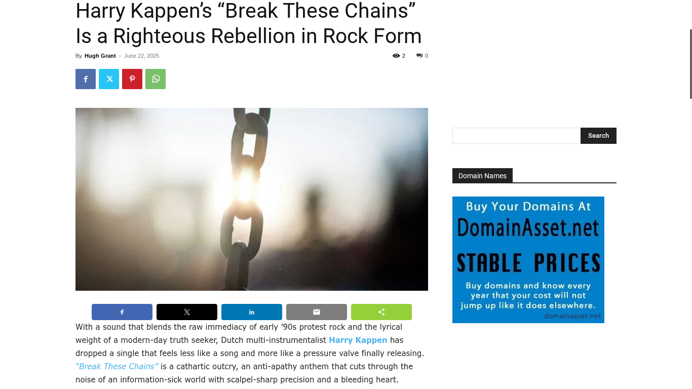 Harry Kappen’s “Break These Chains” Reviewed by Axcess News