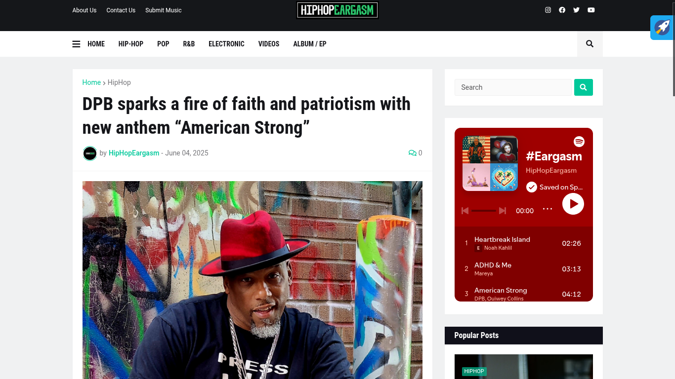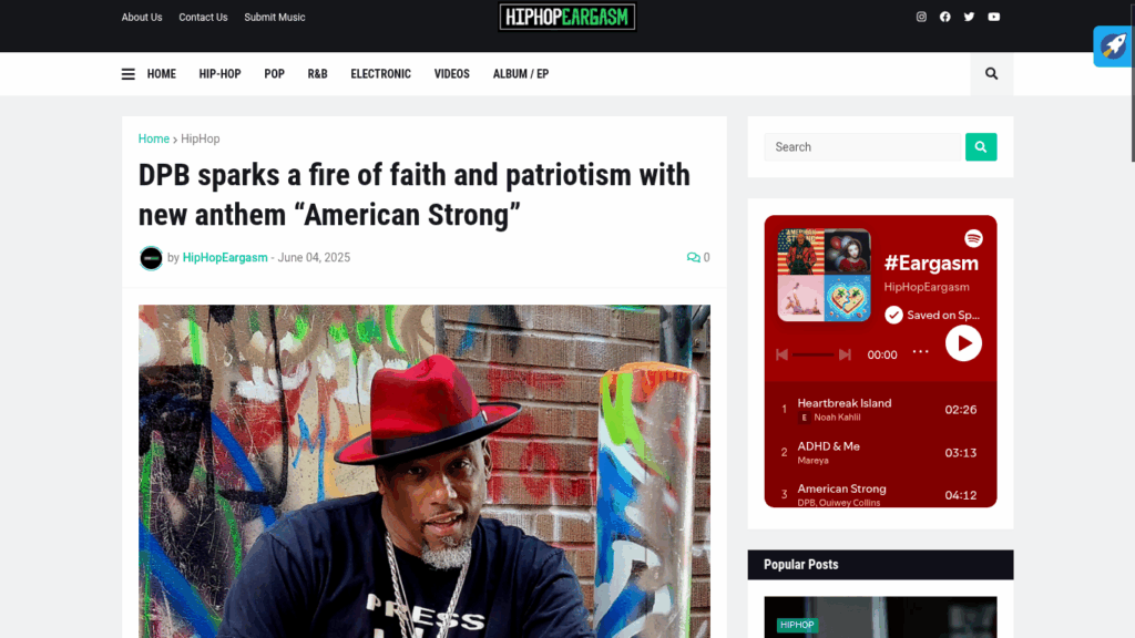 Hip Hop Eargasm Reviews DPB’s “American Strong” https://www.hiphopeargasm.com/2025/06/dpb-sparks-fire-of-faith-and-patriotism.html
