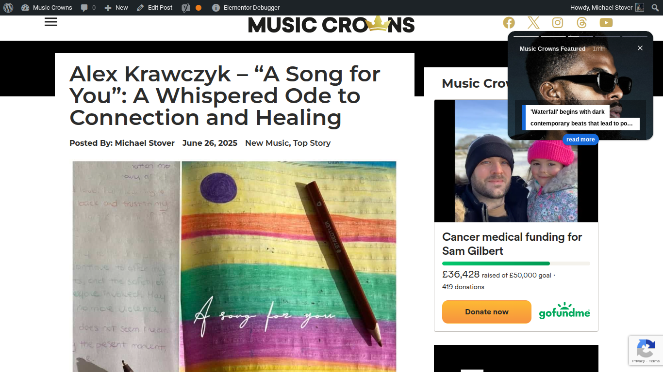 Music Crowns Reviews Alex Krawczyk’s “A Song for You” https://www.musiccrowns.org/new-music/alex-krawczyk-a-song-for-you-a-whispered-ode-to-connection-and-healing/