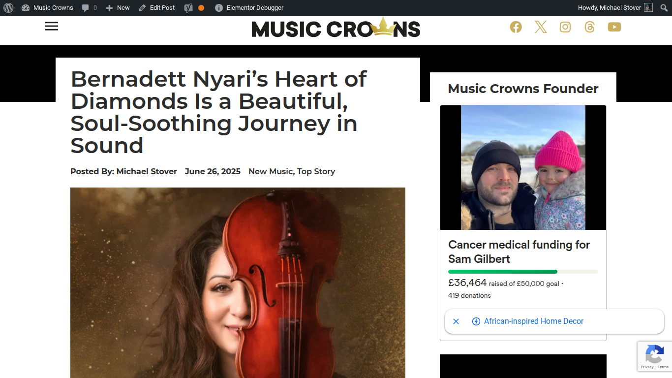 Music Crowns Reviews Bernadett Nyari’s “Heart of Diamonds” https://www.musiccrowns.org/new-music/bernadett-nyaris-heart-of-diamonds-is-a-beautiful-soul-soothing-journey-in-sound/