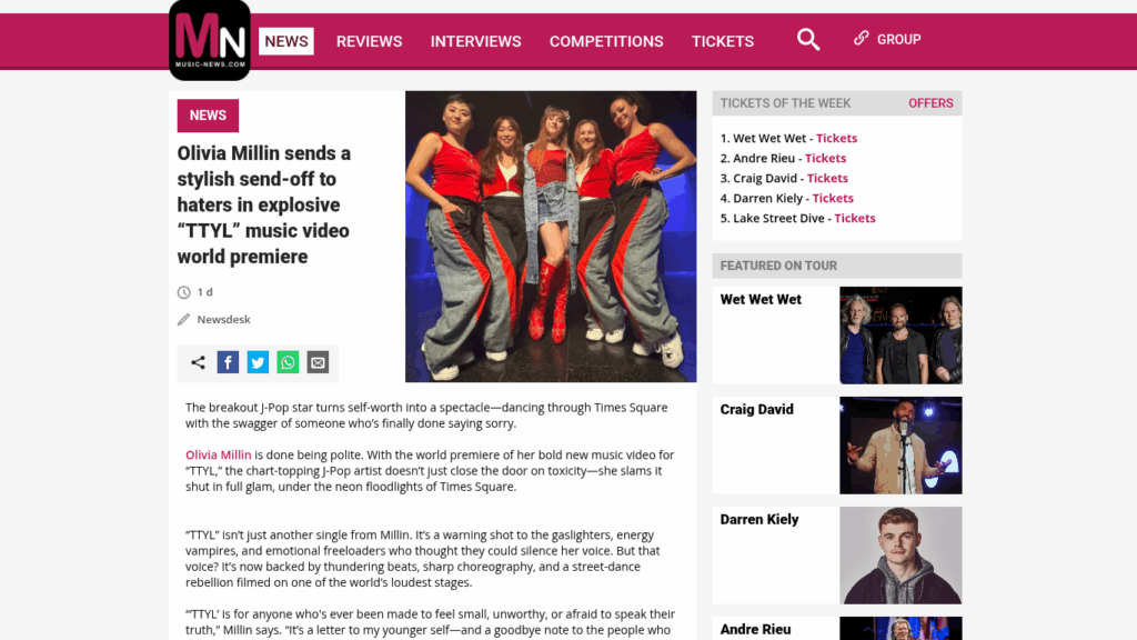 Music-News World Premieres Olivia Millin’s “TTYL” video https://www.music-news.com/news/Underground/182570/Olivia-Millin-sends-a-stylish-send-off-to-haters-in-explosive-TTYL-music-video-world-premiere