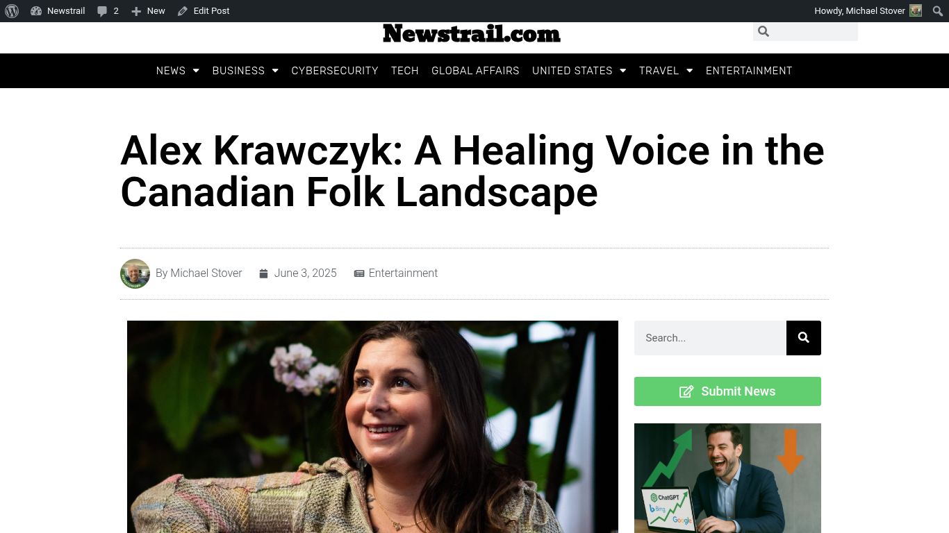 Newstrail Features Alex Krawczyk https://www.newstrail.com/alex-krawczyk-a-healing-voice-in-folk-landscape/