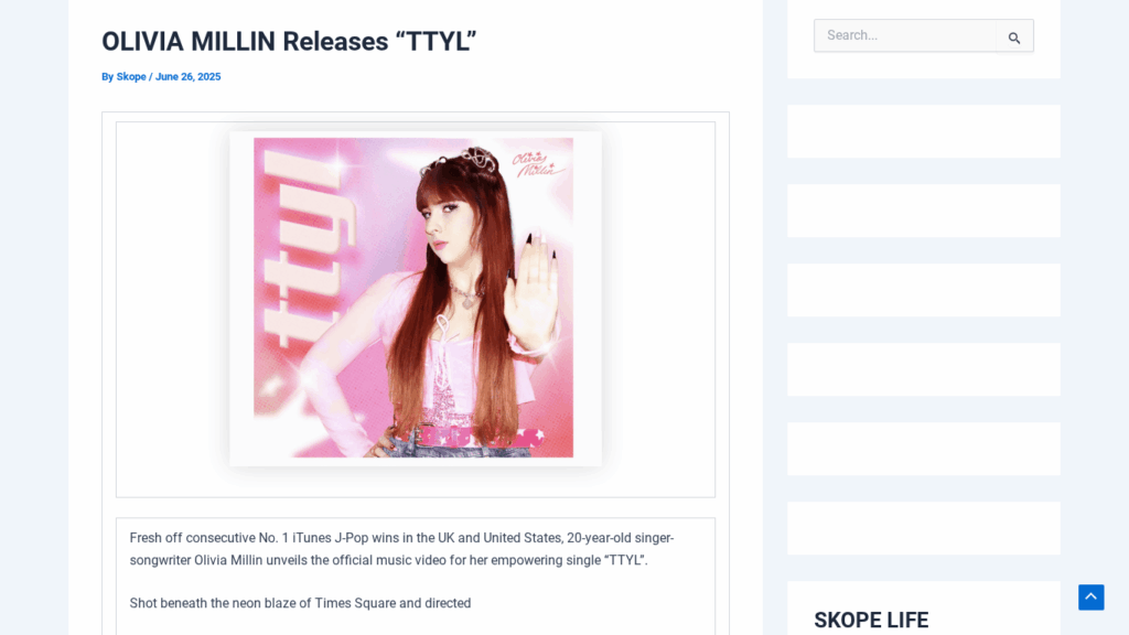 Skope Mag features Olivia Millin’s “TTYL” video https://skopemag.com/2025/06/26/olivia-millin-releases-ttyl