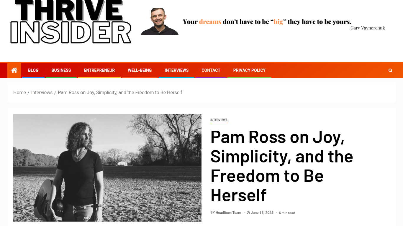 Thrive Insider Interviews Pam Ross https://thriveinsider.com/interviews/pam-ross-on-joy-simplicity-and-the-freedom-to-be-herself/