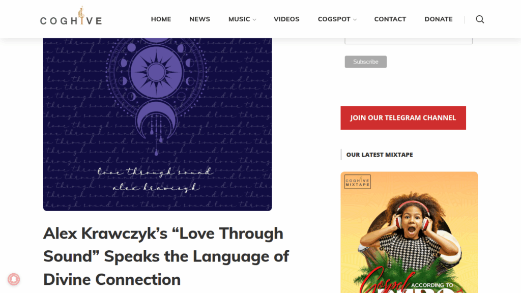 Coghive Reviews Alex Krawczyk’s “Love Through Sound” https://coghive.com/alex-krawczyks-love-through-sound-speaks-the-language-of-divine-connection/