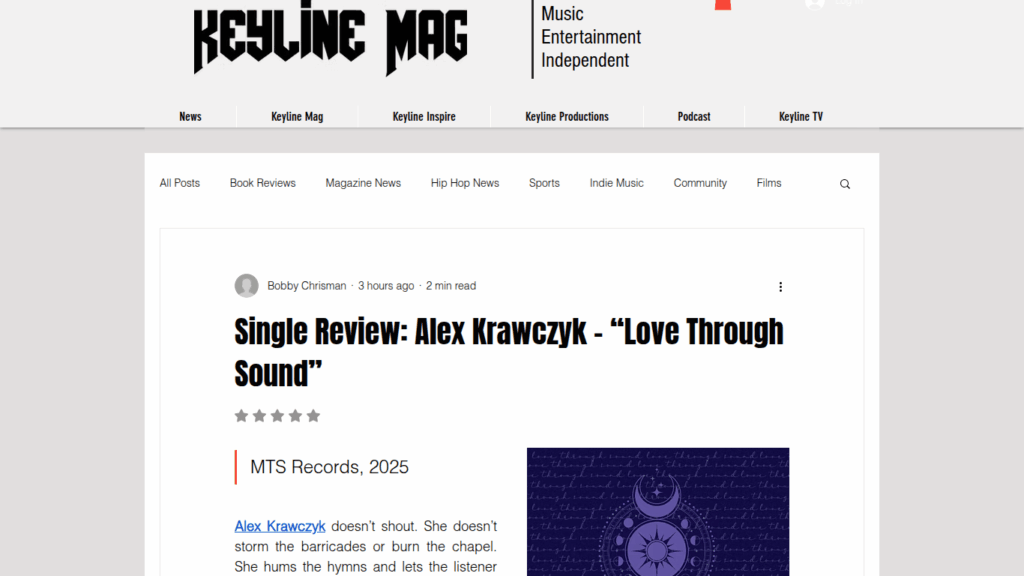 Keyline Magazine Reviews Alex Krawczyk’s “Love Through Sound” https://www.keylinemagonline.com/post/single-review-alex-krawczyk