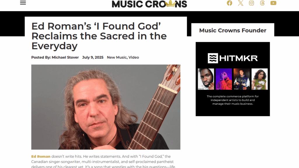 Music Crowns Reviews Ed Roman’s “I Found God” https://www.musiccrowns.org/new-music/ed-romans-i-found-god-reclaims-the-sacred-in-the-everyday/