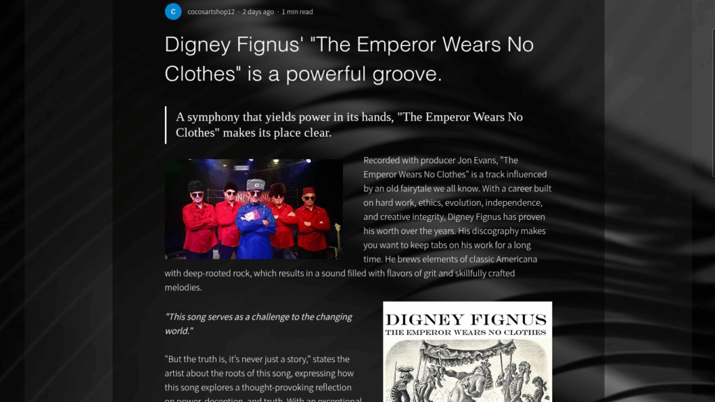 Project Timbre Reviews Digney Fignus’ “The Emperor Wears No Clothes” https://www.projecttimbre.com/post/digney-fignus-the-emperor-wears-no-clothes-is-a-powerful-groove