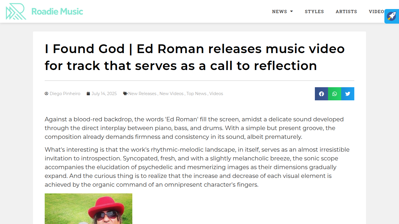 Roadie Music Reviews Ed Roman’s “I Found God” https://roadie-music.com/i-found-god-ed-roman-lanca-videoclipe-para-faixa-que-funciona-como-um-chamado-a-reflexao/