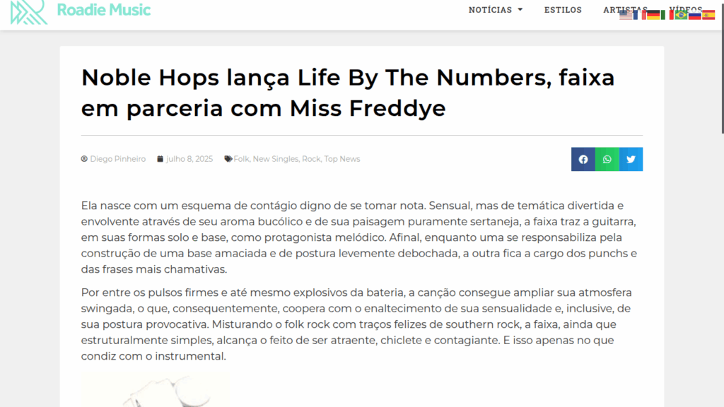 Roadie Music Reviews Noble Hops ft. Miss Freddye “Life By the Numbers” https://roadie-music.com/noble-hops-lanca-life-by-the-numbers-faixa-em-parceria-com-miss-freddye/