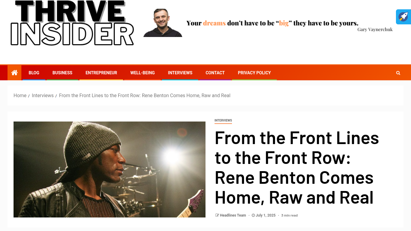 Thrive Insider Interviews Rene Benton https://thriveinsider.com/interviews/from-the-front-lines-to-the-front-row-rene-benton-comes-home-raw-and-real/