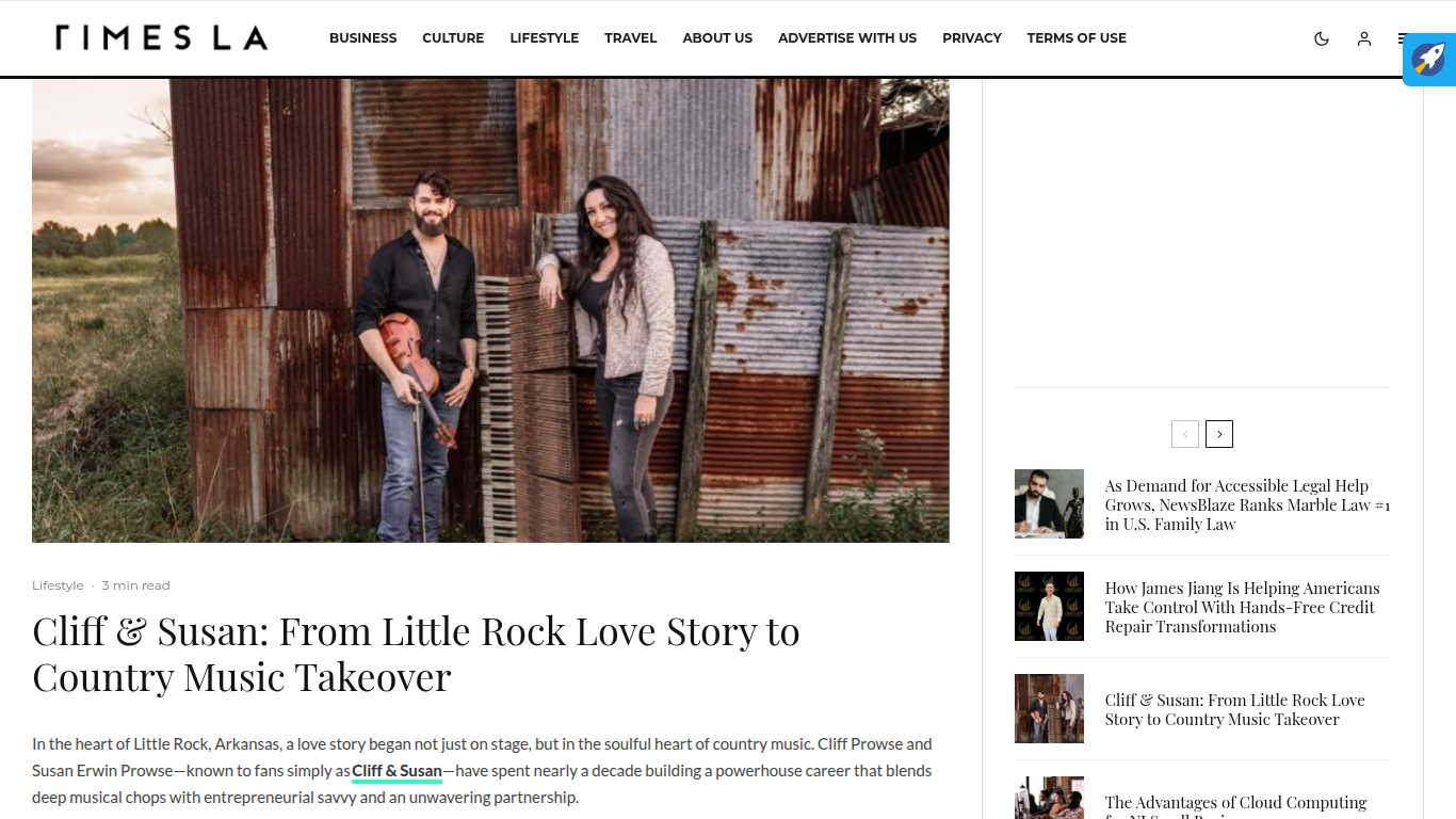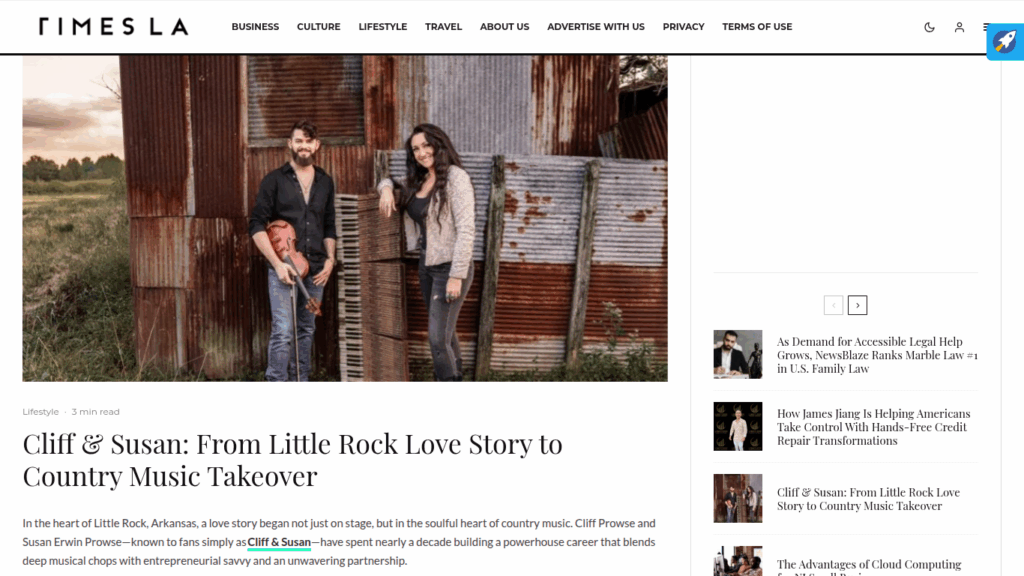 Times LA Features Cliff & Susan https://www.timesla.com/cliff-susan-from-little-rock-love-story-to-country-music-takeover/#google_vignette