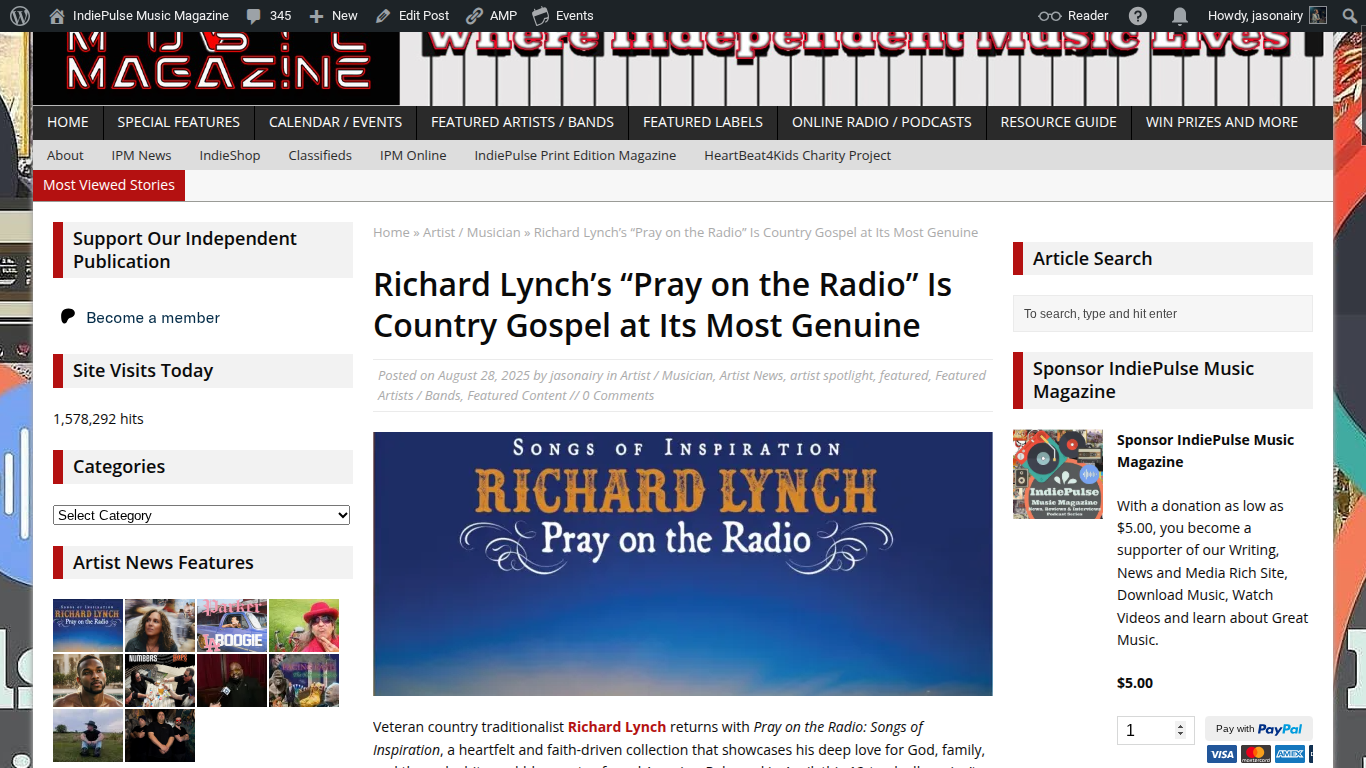 Indie Pulse Music Reviews Richard Lynch’s “Pray on the Radio” https://indiepulsemusic.com/2025/08/28/richard-lynchs-pray-on-the-radio-is-country-gospel-at-its-most-genuine/