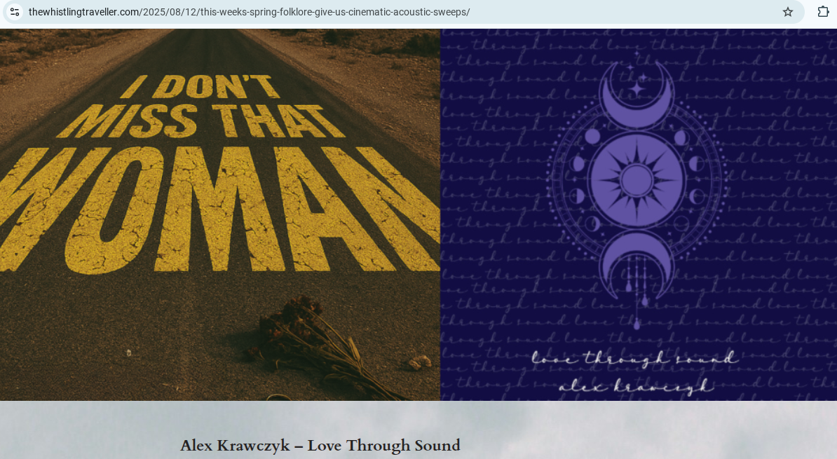 The Whistling Traveller Reviews Alex Krawczyk’s “Love Through Sound” https://thewhistlingtraveller.com/2025/08/12/this-weeks-spring-folklore-give-us-cinematic-acoustic-sweeps/