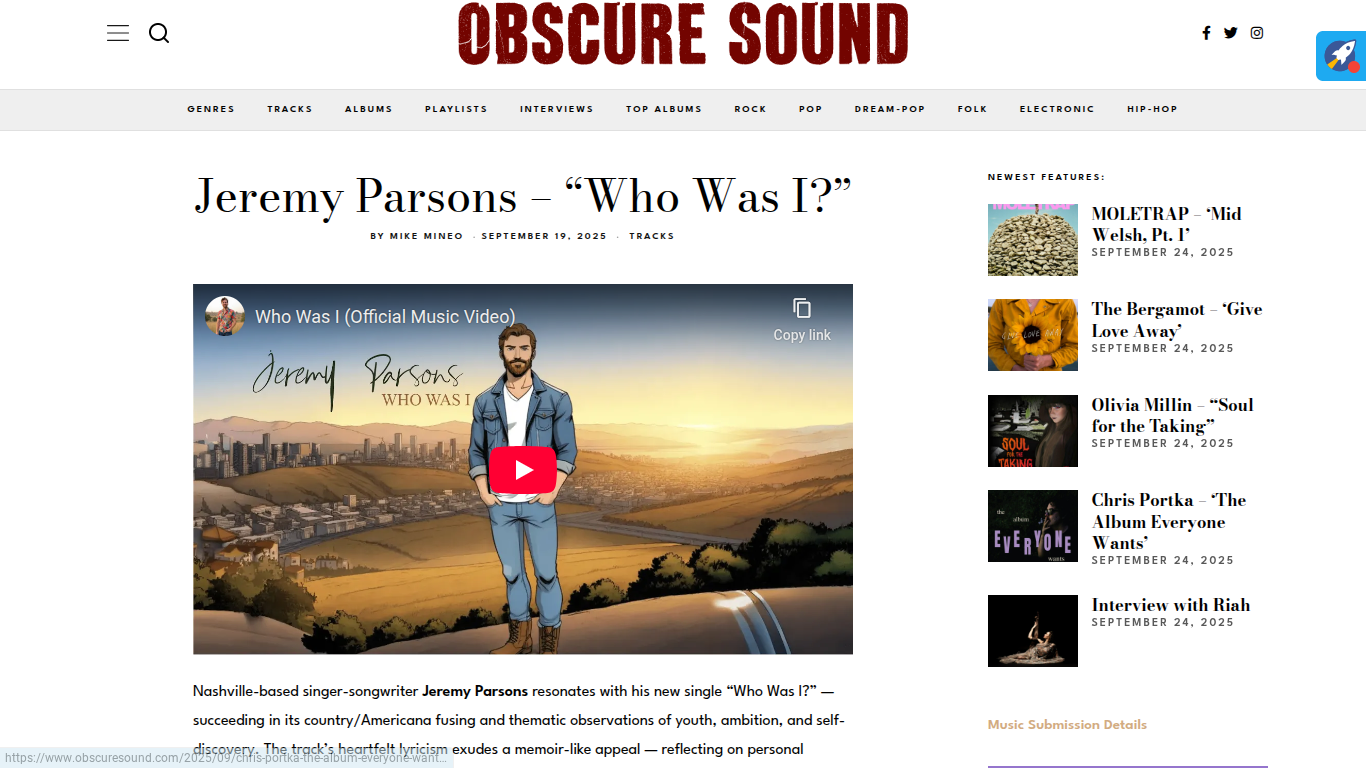 Home Auto Draft Obscure Sound Reviews Jeremy Parsons' "Who Was I?"
