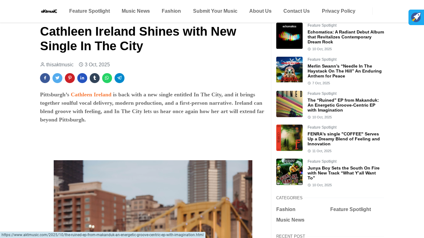AKT Music Reviews Cathleen Ireland’s “In The City” https://www.aktmusic.com/2025/10/cathleen-ireland-shines-with-new-single-in-the-city.html