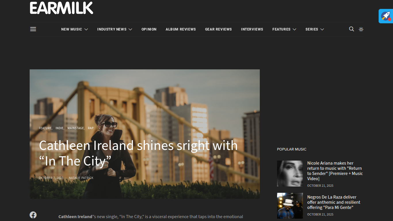 Earmilk Reviews Cathleen Ireland’s “In The City” https://earmilk.com/2025/10/07/cathleen-ireland-shines-bright-with-in-the-city/