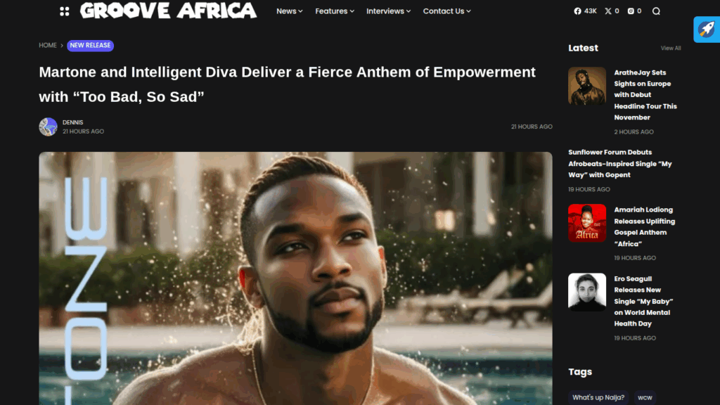 Groove Africa Reviews Martone’s “Too Bad So Sad” https://groove-africa.com/martone-and-intelligent-diva-deliver-a-fierce-anthem-of-empowerment-with-too-bad-so-sad/