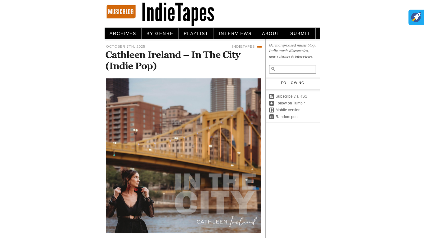 Indie Tapes Reviews Cathleen Ireland’s “In The City” https://indie-tapes.com/post/796712331299176448/cathleen-ireland-in-the-city-indie-pop