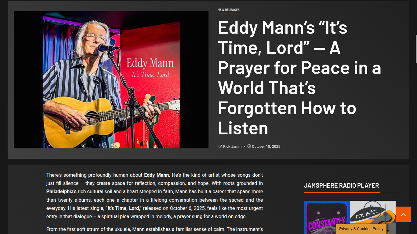 Jamsphere Reviews Eddy Mann’s “It’s Time Lord” https://jamsphere.com/newreleases/eddy-manns-its-time-lord-a-prayer-for-peace-in-a-world-thats-forgotten-how-to-listen#google_vignette