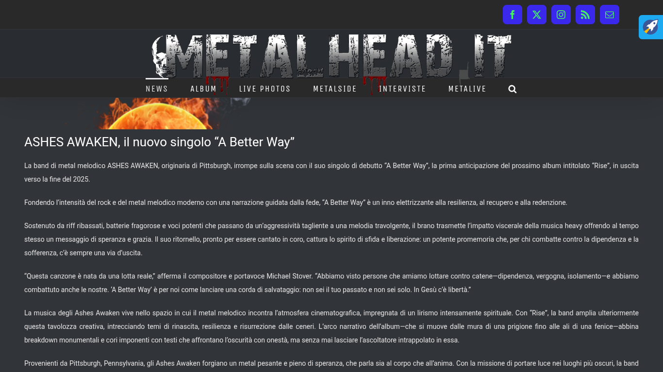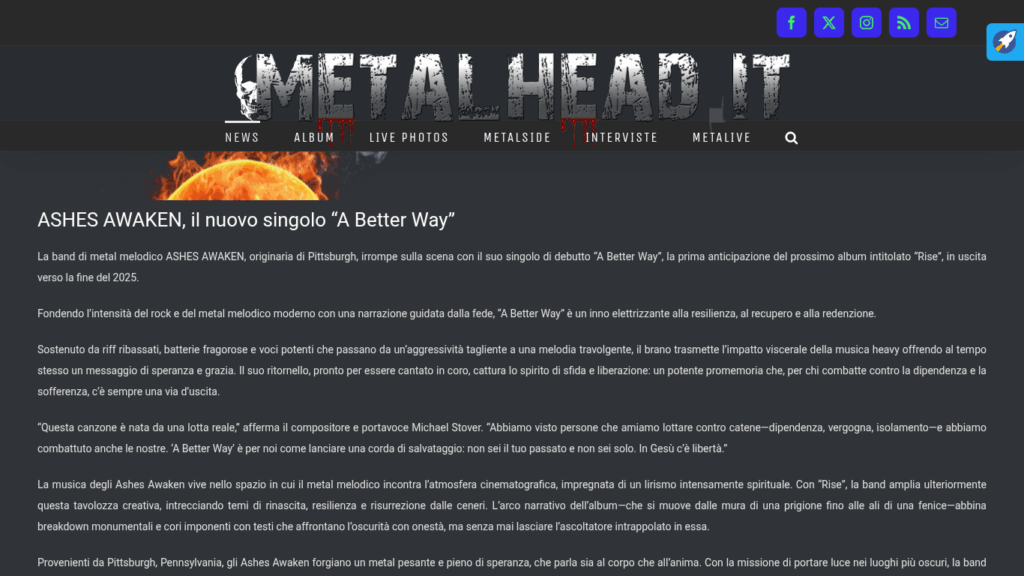 MetalHead.it Features Ashes Awaken's "A Better Way"
