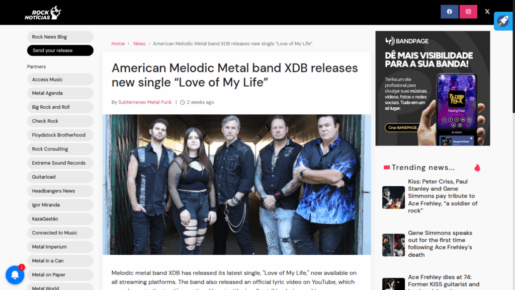 Rock Noticias Features XDB’s “Love of My Life” https://www.rocknoticias.com.br/banda-de-metal-melodico-americano-xdb-lanca-novo-single-love-of-my-life-143622.html