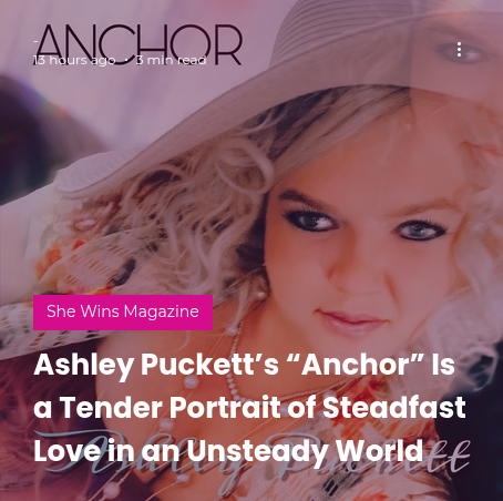 She Wins Magazine Reviews Ashley Puckett’s “Anchor” https://www.sherisesstudios.com/post/ashley-puckett-s-anchor-is-a-tender-portrait-of-steadfast-love-in-an-unsteady-world