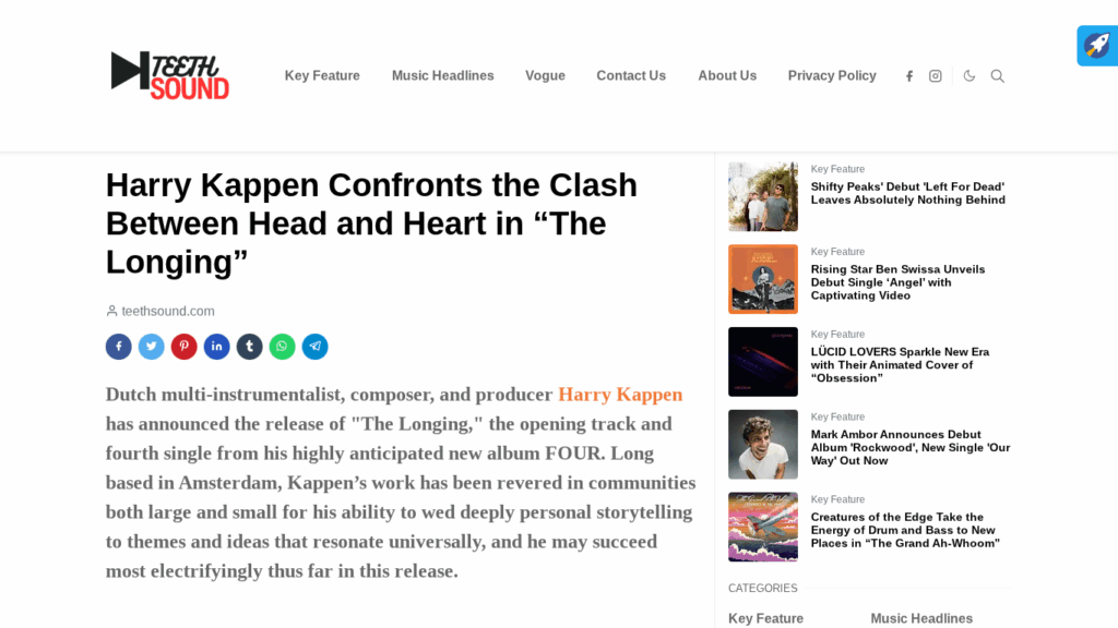 Teeth Sound Reviews Harry Kappen’s “The Longing” https://www.teethsound.com/2025/09/harry-kappen-confronts-the-clash-between-head-and-heart-in-the-longing.html