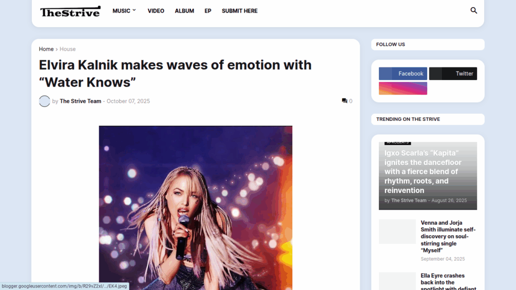 The Strive Magazine Reviews Elvira Kalnik’s “Water Knows” https://www.thestrivemagazine.com/2025/10/elvira-kalnik-makes-waves-of-emotion.html