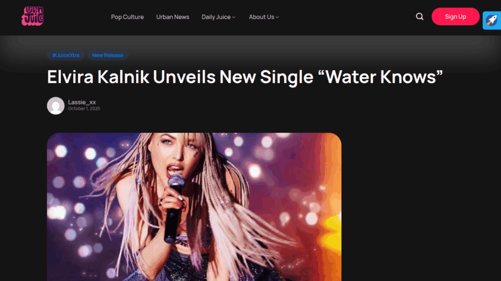 The Urban Juice Reviews Elvira Kalnik’s “Water Knows” https://theurbanjuice.com/elvira-kalnik-unveils-new-single-water-knows/