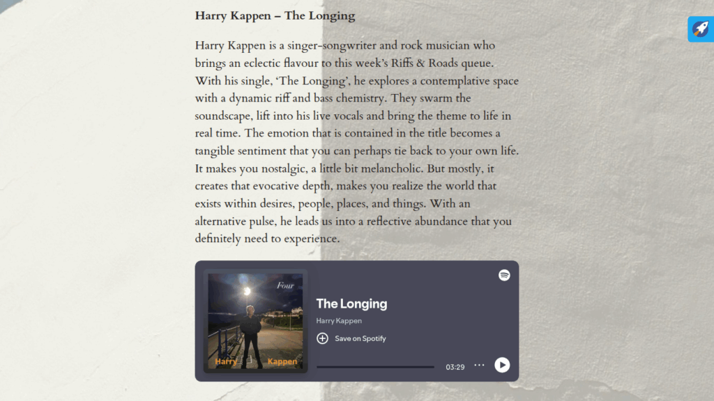 The Whistling Traveller Reviews Harry Kappen’s “The Longing” https://thewhistlingtraveller.com/2025/10/04/this-weeks-riffs-roads-list-brings-a-fresh-alt-rock-perspective/