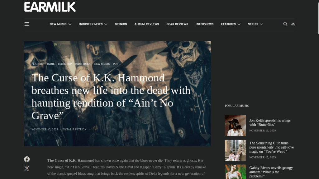 Earmilk Reviews The Curse of KK Hammond’s “Ain’t No Grave” https://earmilk.com/2025/11/13/the-curse-of-k-k-hammond-breathes-new-life-into-the-dead-with-haunting-rendition-of-aint-no-grave/