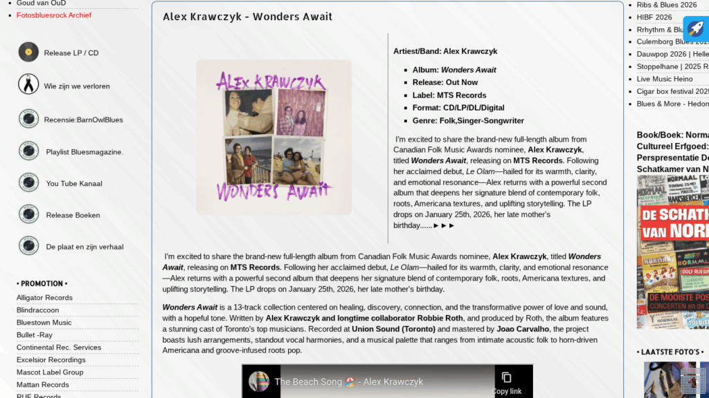 FotosBluesRockandmore Features Alex Krawczyk’s “Wonders Await” LP https://fotosbluesrockandmore.blogspot.com/2025/11/alex-krawczyk-wonders-await.html