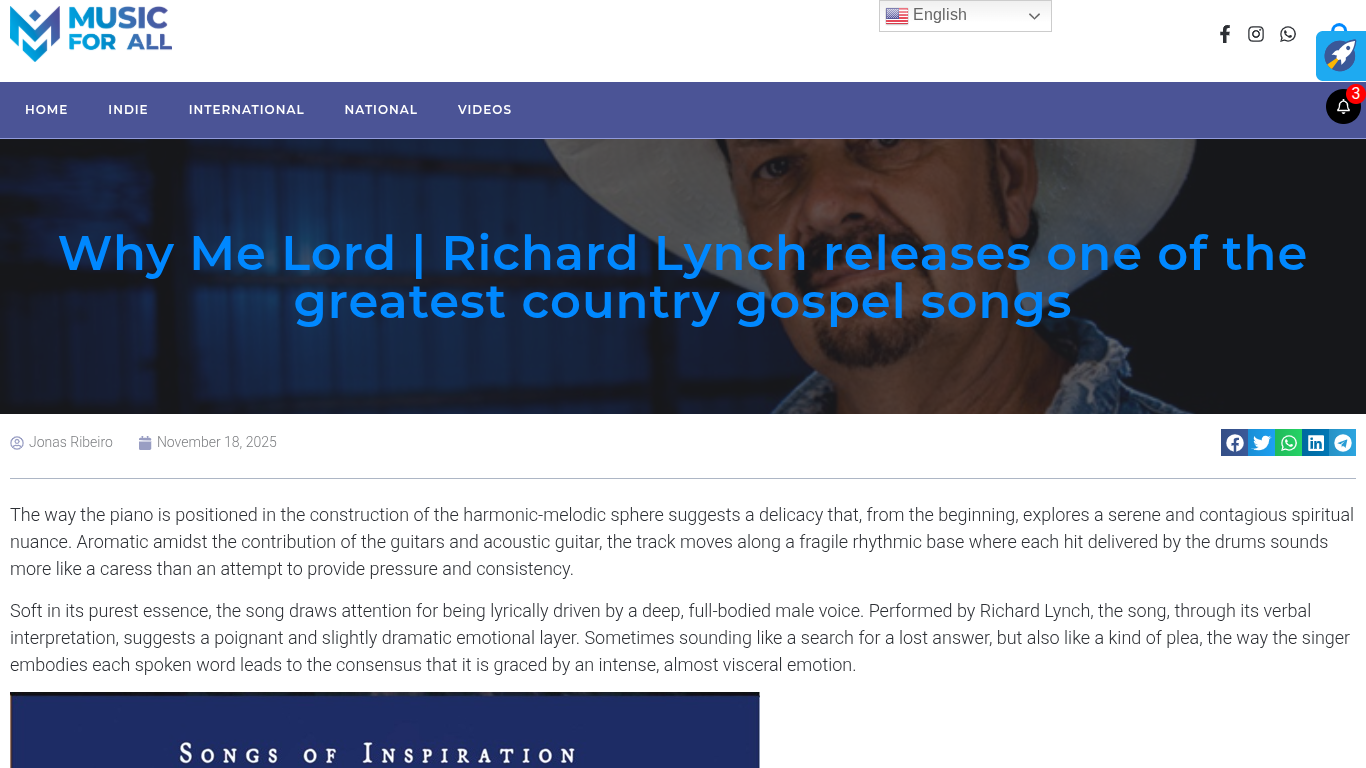 Music For All Reviews Richard Lynch’s “Why Me Lord?”