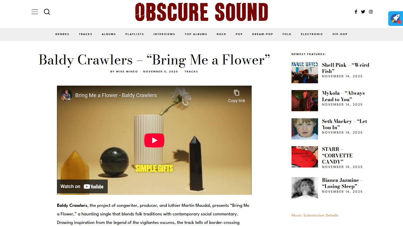 Obscure Sound Reviews Baldy Crawlers’ “Bring Me a Flower” https://www.obscuresound.com/2025/11/baldy-crawlers-bring-me-a-flower/