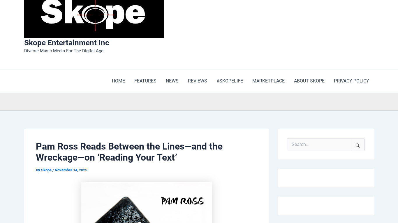 Skope Mag reviews Pam Ross’ “Reading Your Text” https://skopemag.com/2025/11/14/pam-ross-reads-between-the-lines-and-the-wreckage-on-reading-your-text