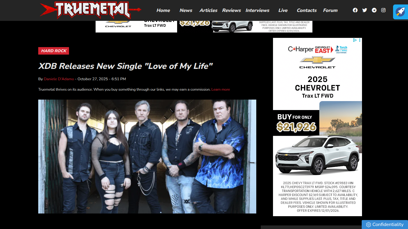 True Metal Features XDB’s “Love of My Life” https://www.truemetal.it/heavy-metal-news/xdb-pubblicato-il-nuovo-singolo-love-of-my-life-1209498
