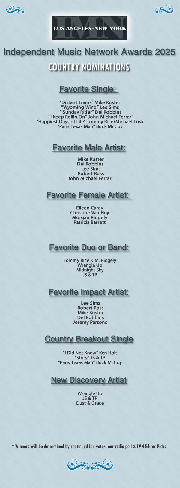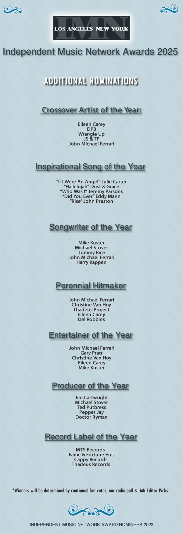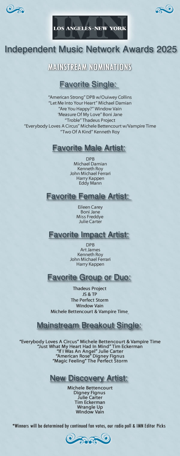 NOMINEES HAVE BEEN ANNOUNCED FOR THE 2025 INDEPENDENT MUSIC NETWORK AWARDS!!