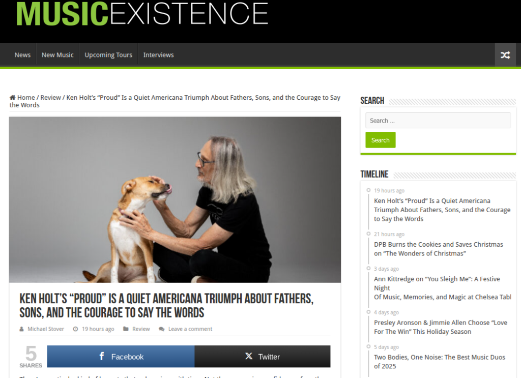 Music Existence Reviews Ken Holt’s “Proud” https://musicexistence.com/blog/2025/12/19/ken-holts-proud-is-a-quiet-americana-triumph-about-fathers-sons-and-the-courage-to-say-the-words/