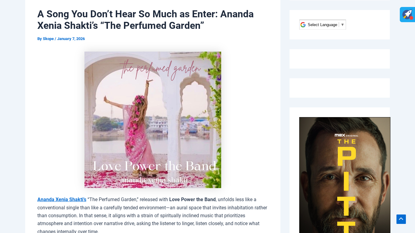 Skope Magazine Reviews Ananda Xenia Shakti/Love Power the Band’s “The Perfumed Garden” https://skopemag.com/2026/01/07/a-song-you-dont-hear-so-much-as-enter-ananda-xenia-shaktis-the-perfumed-garden