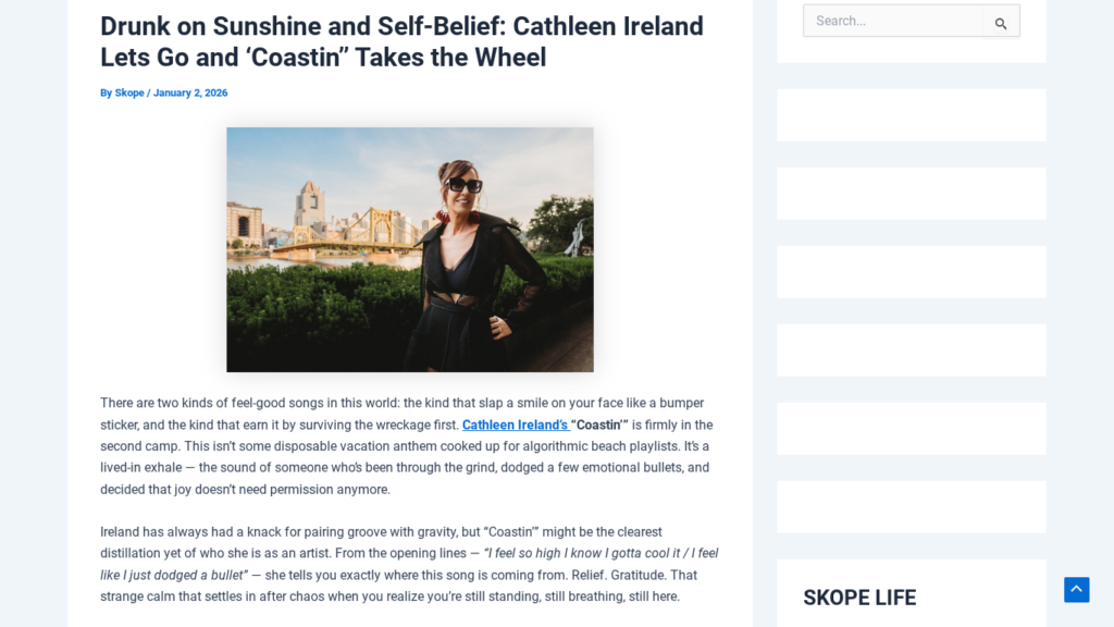 Skope Magazine Reviews Cathleen Ireland’s “Coastin'” https://skopemag.com/2026/01/02/drunk-on-sunshine-and-self-belief-cathleen-ireland-lets-go-and-coastin-takes-the-wheel