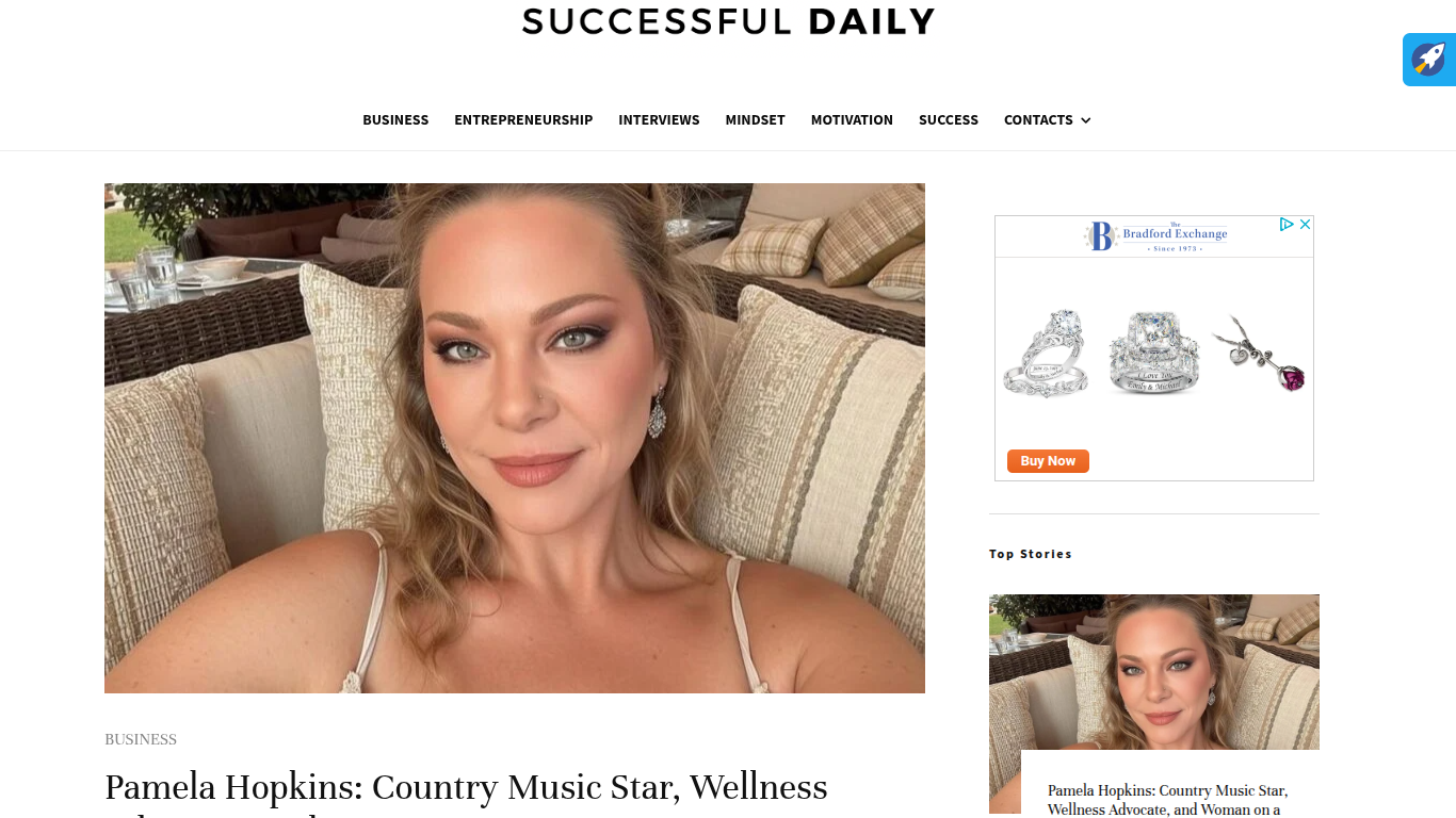 Successful Daily Features Pamela Hopkins https://www.successfuldaily.com/pamela-hopkins-country-music-star-wellness-advocate-and-woman-on-a-mission/