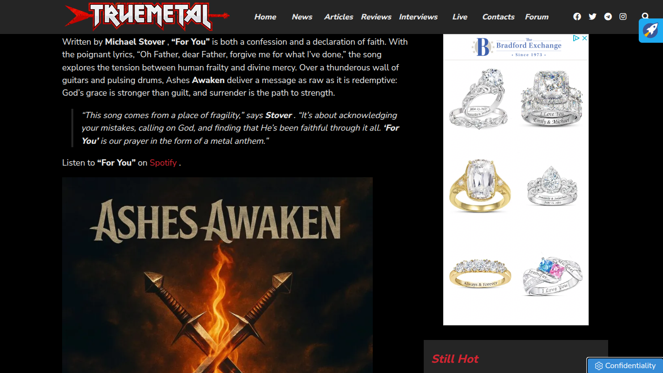 True Metal Features Ashes Awaken’s “For You” https://www.truemetal.it/heavy-metal-news/ashes-awaken-nuovo-singolo-for-you-1214699