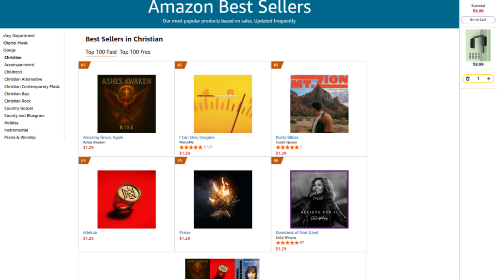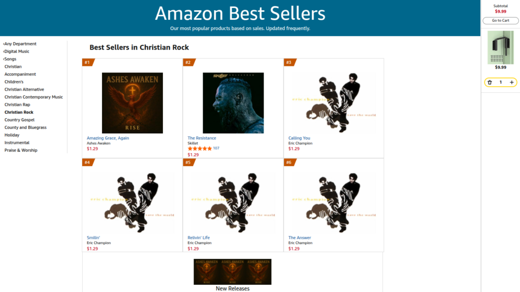 Ashes Awaken Tops Several Amazon Music Charts with “Amazing Grace, Again” https://www.amazon.com/Best-Sellers-Digital-Music-Christian-Rock/zgbs/dmusic/324424011/ref=zg_bs_nav_dmusic_3_324420011 https://www.amazon.com/Best-Sellers-Digital-Music-Christian/zgbs/dmusic/324420011/ref=zg_bs_unv_dmusic_3_324424011_2 https://www.amazon.com/gp/movers-and-shakers/dmusic/digital-music-track/ref=zg_bs_tab_t_dmusic_bsms