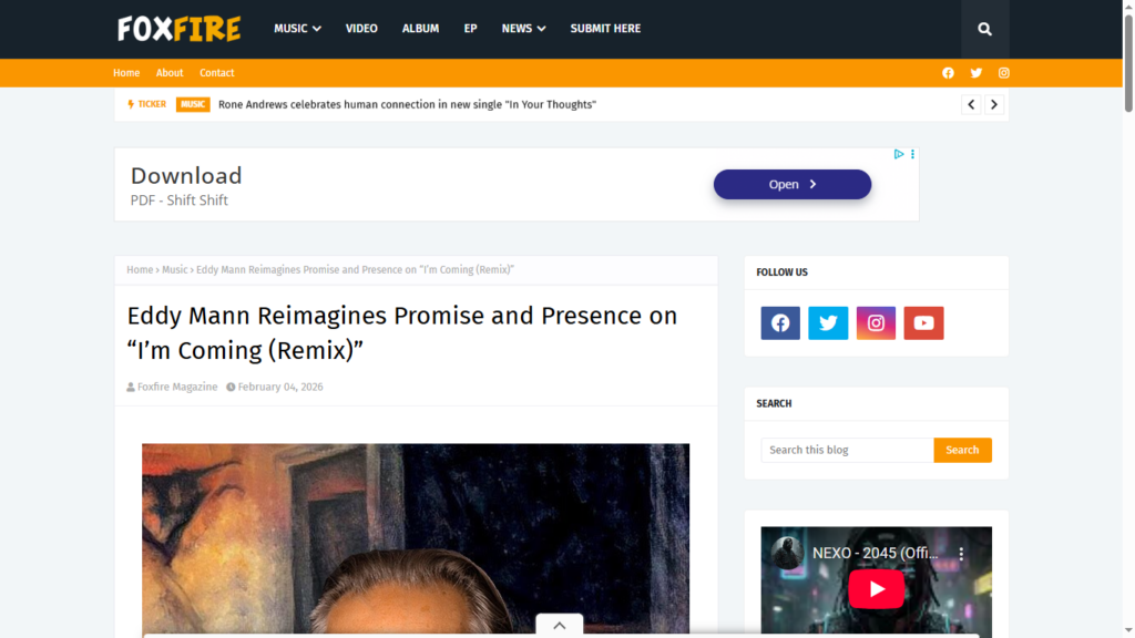 Foxfire Magazine Reviews Eddy Mann’s “I’m Coming (Remix)” https://www.foxfiremagazine.com/2026/02/eddy-mann-reimagines-promise-and.html