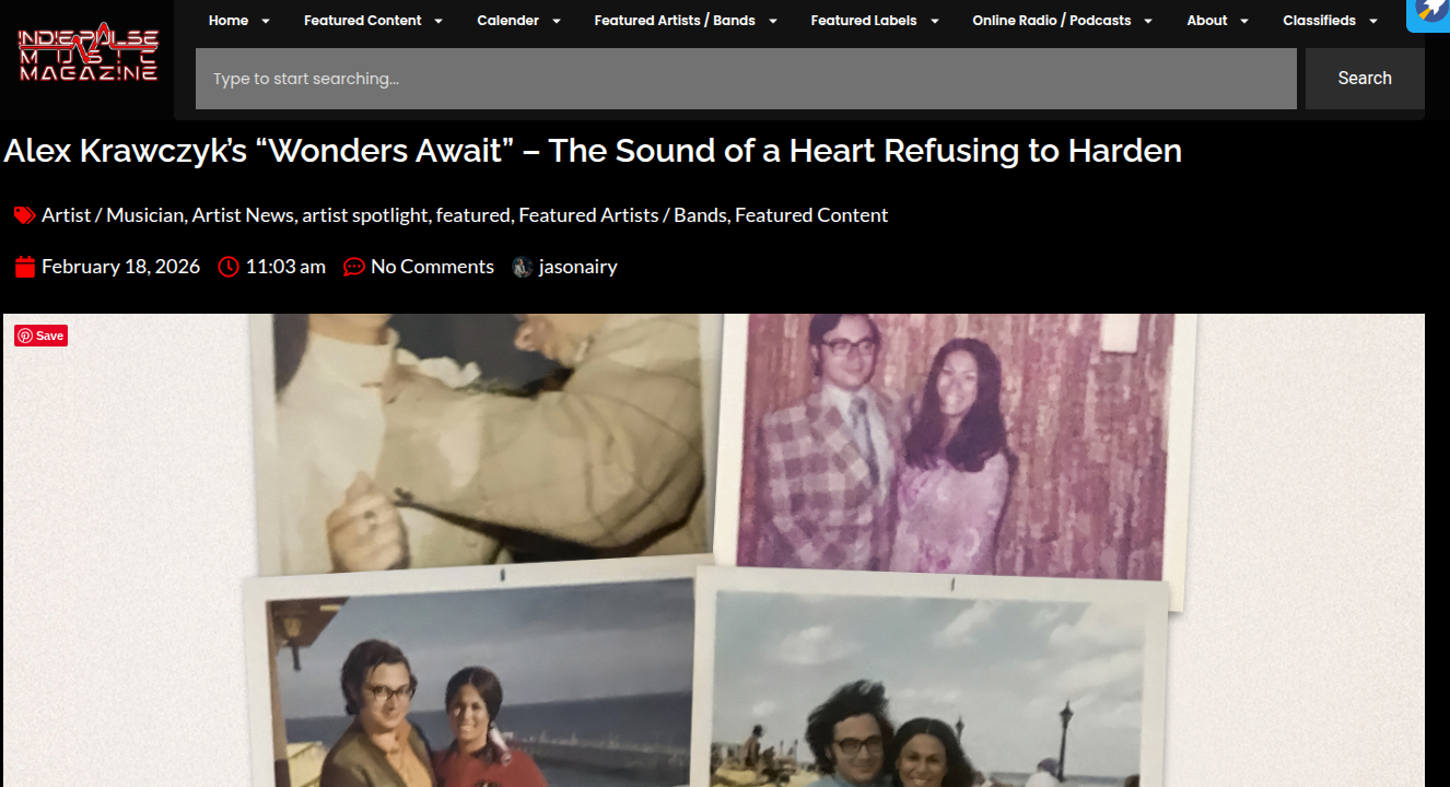 Indie Pulse Music Reviews Alex Krawczyk’s “Wonders Await” https://indiepulsemusic.com/2026/02/18/alex-krawczyks-wonders-await-the-sound-of-a-heart-refusing-to-harden/