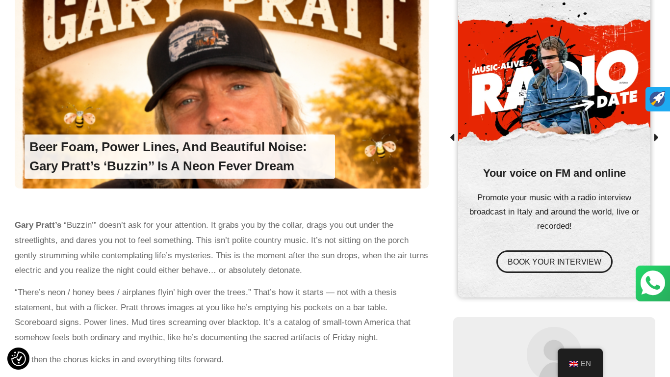 Music Alive Reviews Gary Pratt’s “Buzzin'” https://musicalive.net/en/comunicato/beer-foam-power-lines-and-beautiful-noise-gary-pratts-buzzin-is-a-neon-fever-dream/