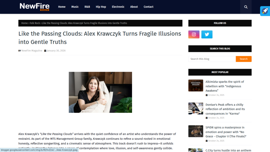 New Fire Magazine Reviews Alex Krawczyk’s “Like the Passing Clouds” https://www.newfiremagazine.com/2026/01/like-passing-clouds-alex-krawczyk-turns.html