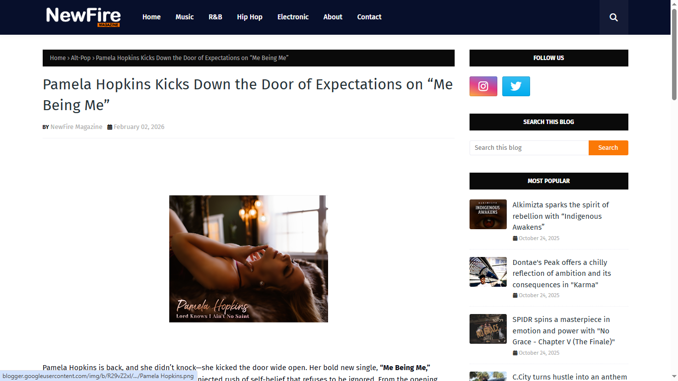 New Fire Magazine Reviews Pamela Hopkins’ “Me Being Me” https://www.newfiremagazine.com/2026/02/pamela-hopkins-kicks-down-door-of.html